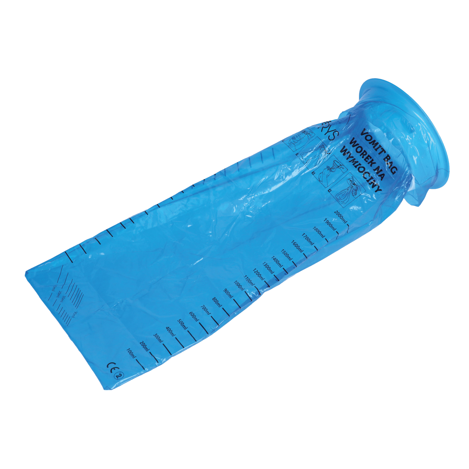 specjalne nacięcie umożliwia zamknięcie worka i higieniczną utylizację treści wymiotnej w sposób " skręć i zaczep,