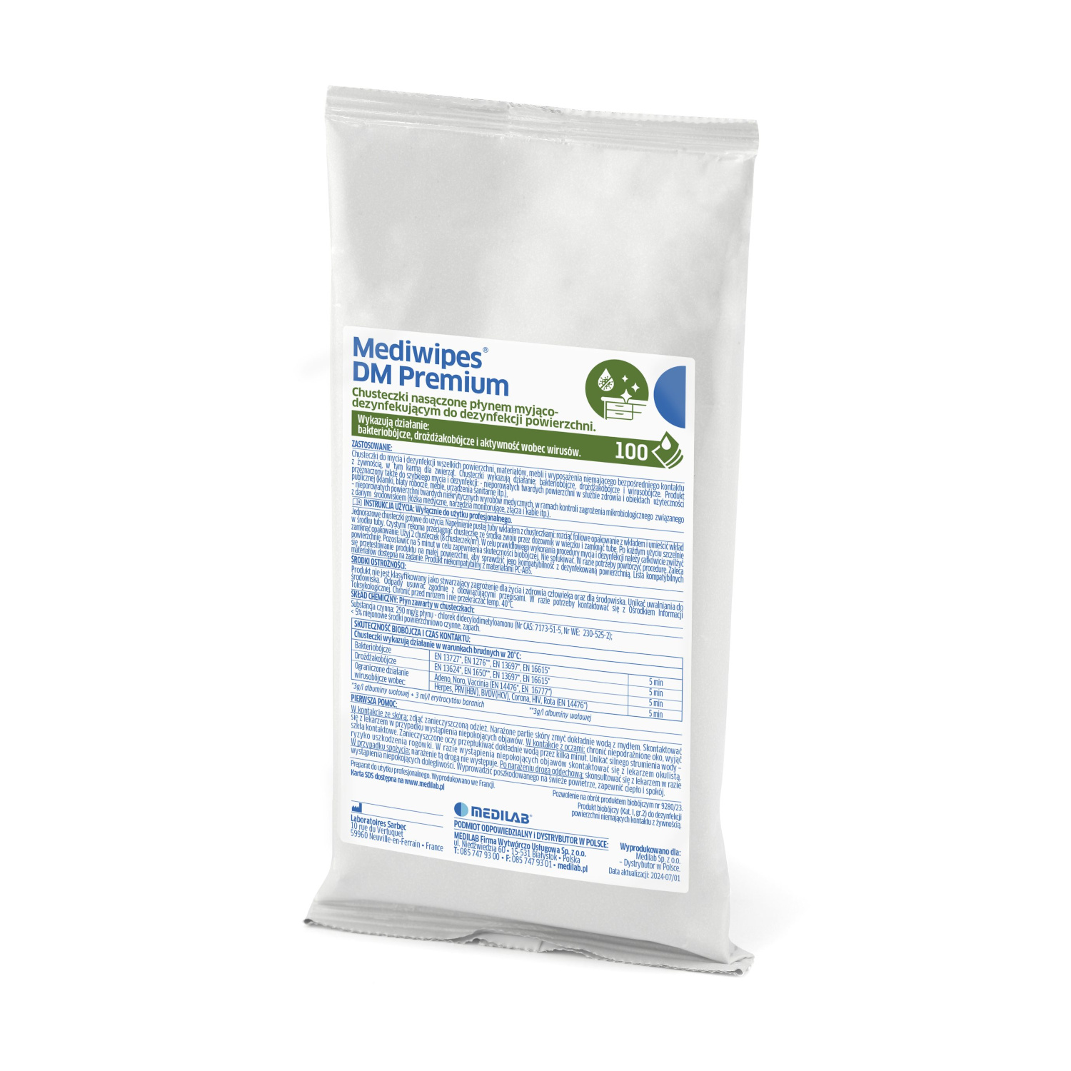 - Mediwipes DM Premium są bezpieczne dla użytkownika i zostały przetestowane dermatologicznie.