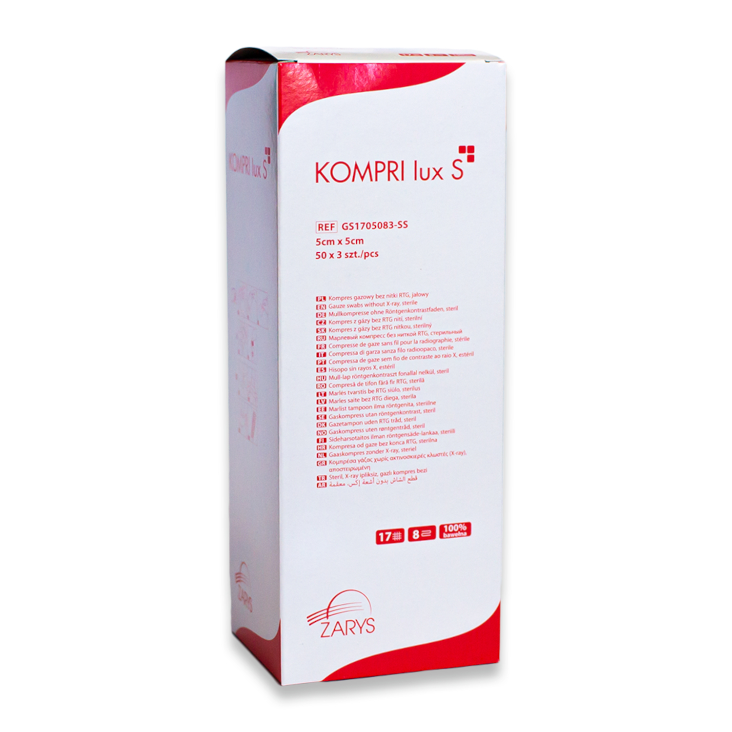 Kompresy gazowe 5cm x 5cm KOMPRI lux S jałowe 17 nitkowe 8 warstwowe