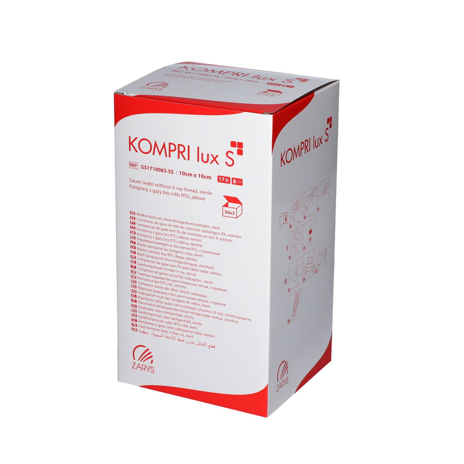 Kompresy gazowe 10cm x 10cm KOMPRI lux S jałowe 17 nitkowe 8 warstwowe