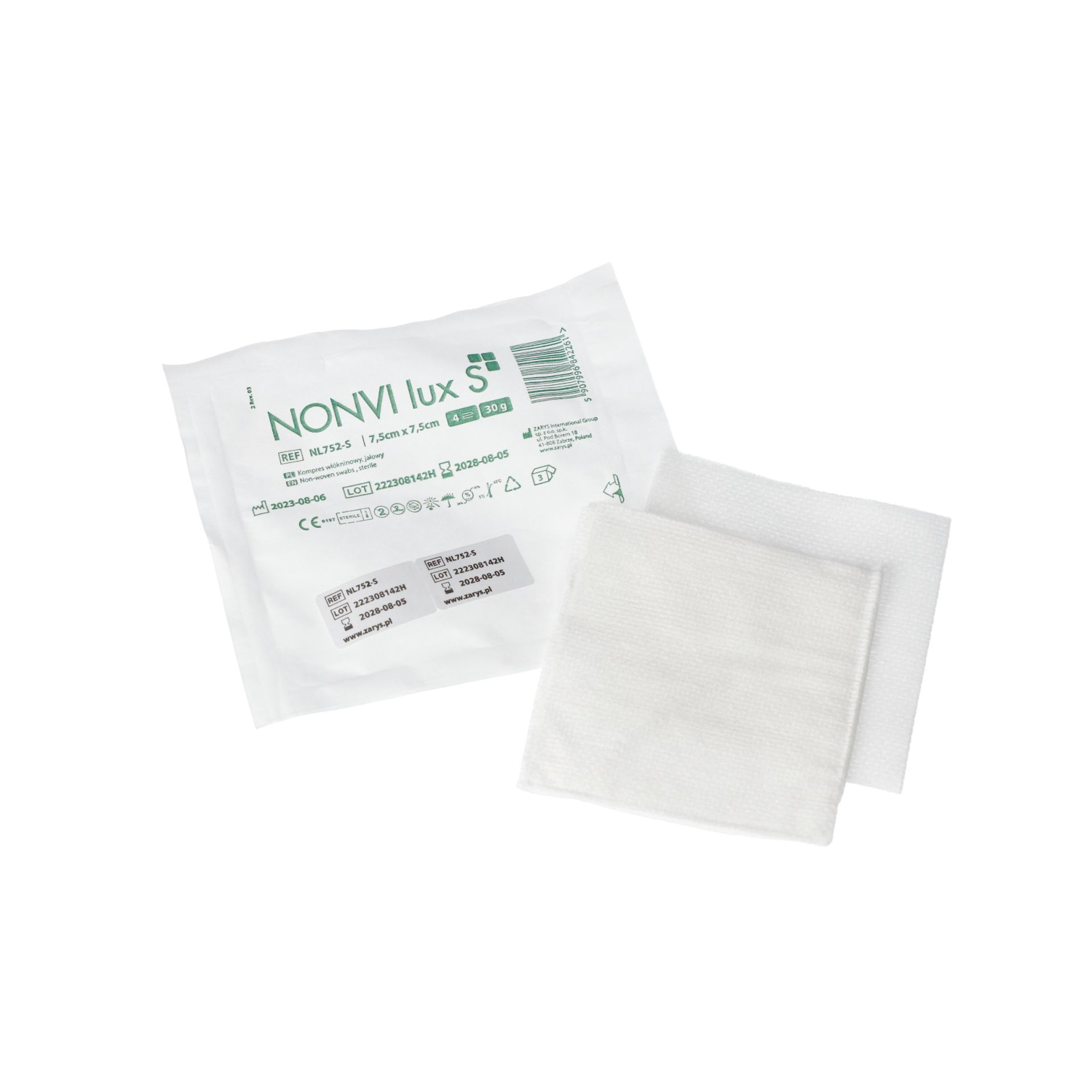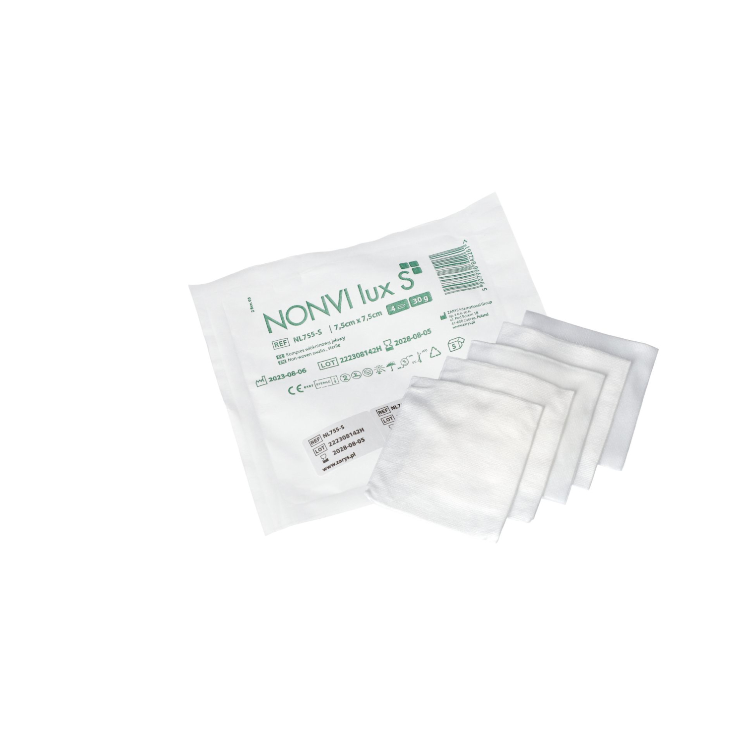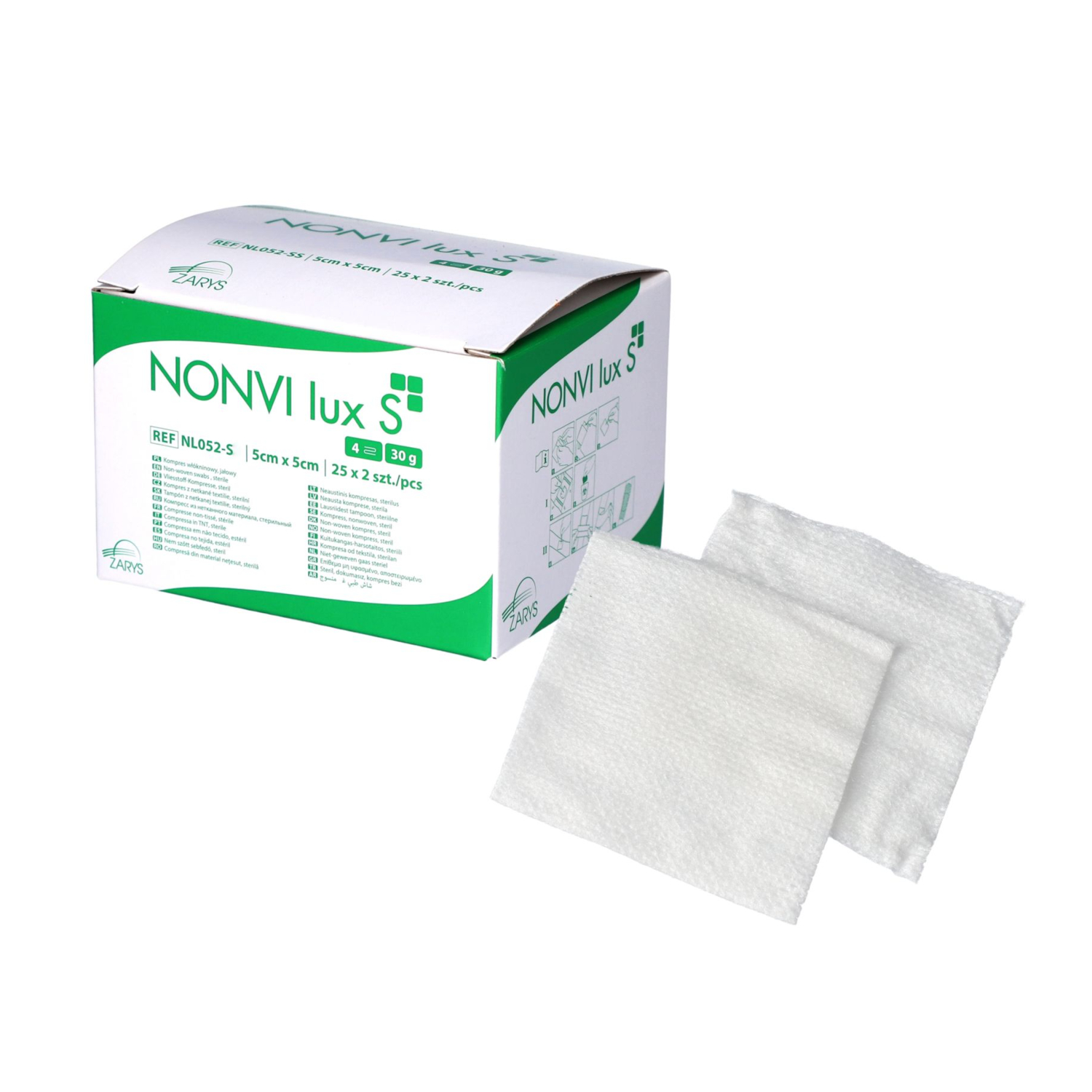 - Jałowe kompresy NONVI lux S są wykonane z miękkiej, dobrze chłonącej płyny włókniny o gramaturze 30g/m2.