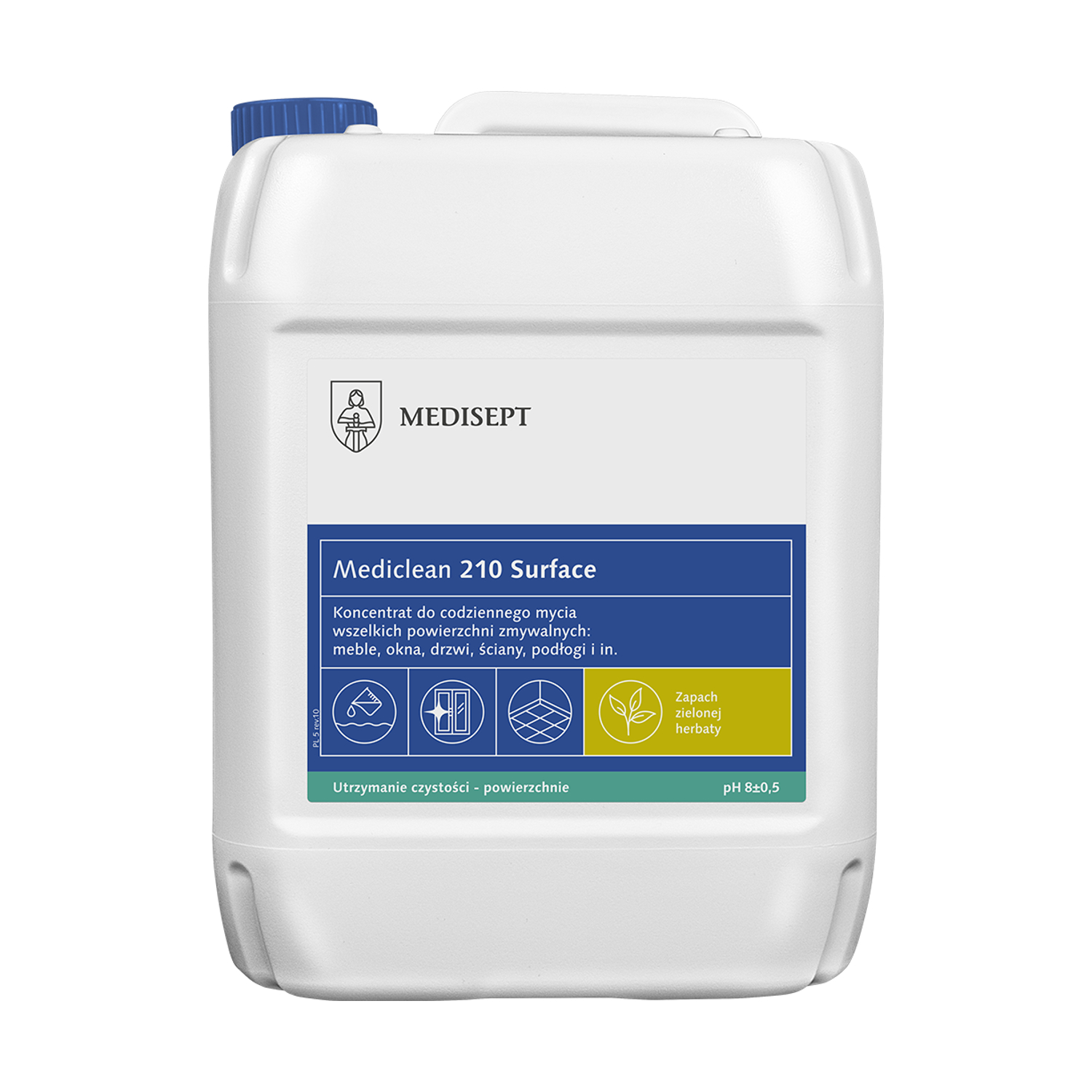 - Mediclean 210 Surface jest preparatem w formie koncentratu do codziennego mycia powierzchni wodoodpornych.