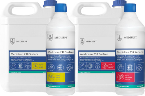 - Mediclean 210 surface jest preparatem w formie koncentratu o dużej wydajności. Z 1 litra można uzyskać do 400 litrów roztworu roboczego.