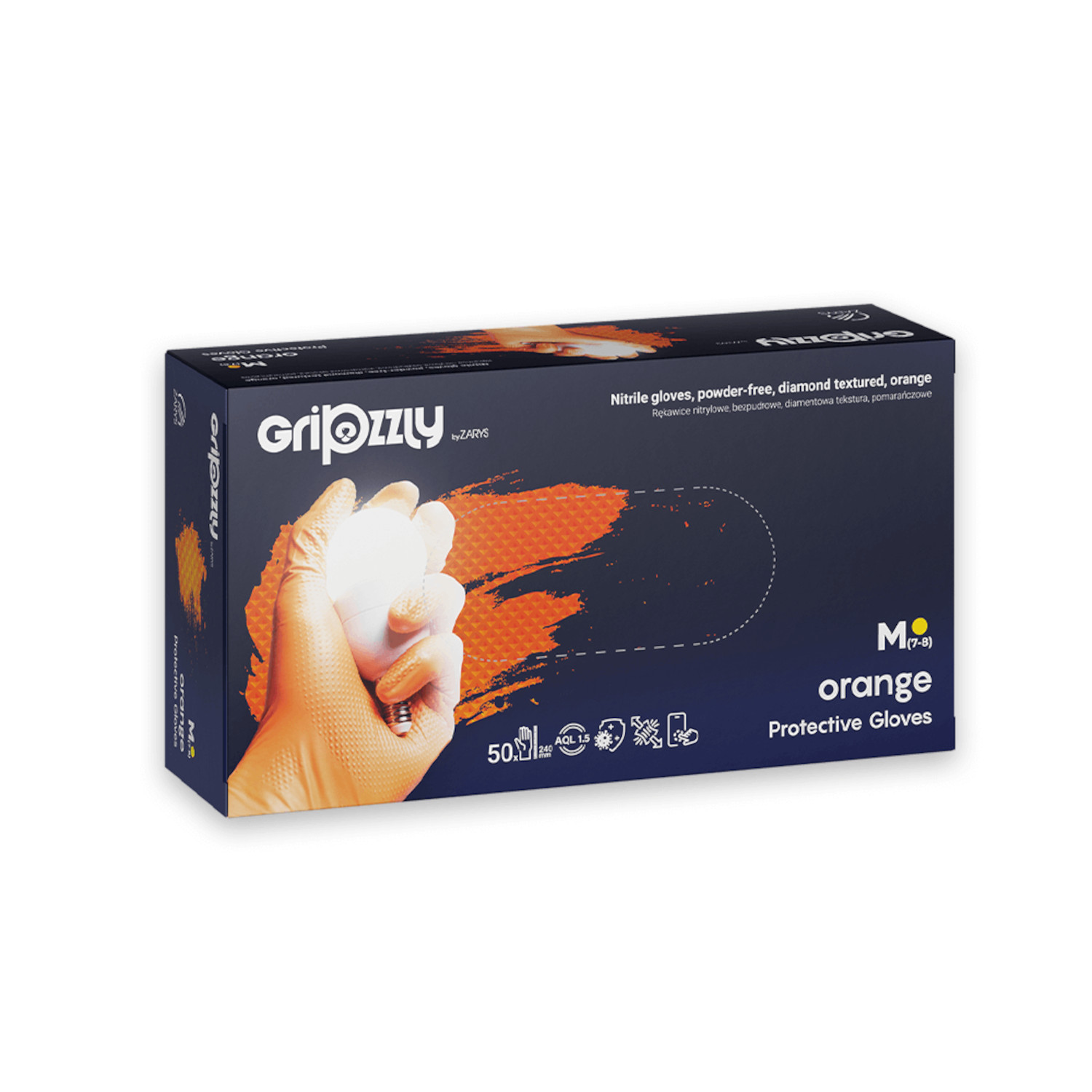 Gripzzly to jednorazowe, grube rękawice robocze wykonane z wytrzymałego nitrylu, zaprojektowane do pracy w wymagających warunkach technicznych i przemysłowych. Produkt nie jest wyrobem medycznym i został zarejestrowany jako środek ochrony indywidualnej kategorii III. Intensywny pomarańczowy kolor zwiększa widoczność dłoni użytkownika, co ma znaczenie w środowiskach o podwyższonym ryzyku i w strefach wymagających szczególnej kontroli bezpieczeństwa.