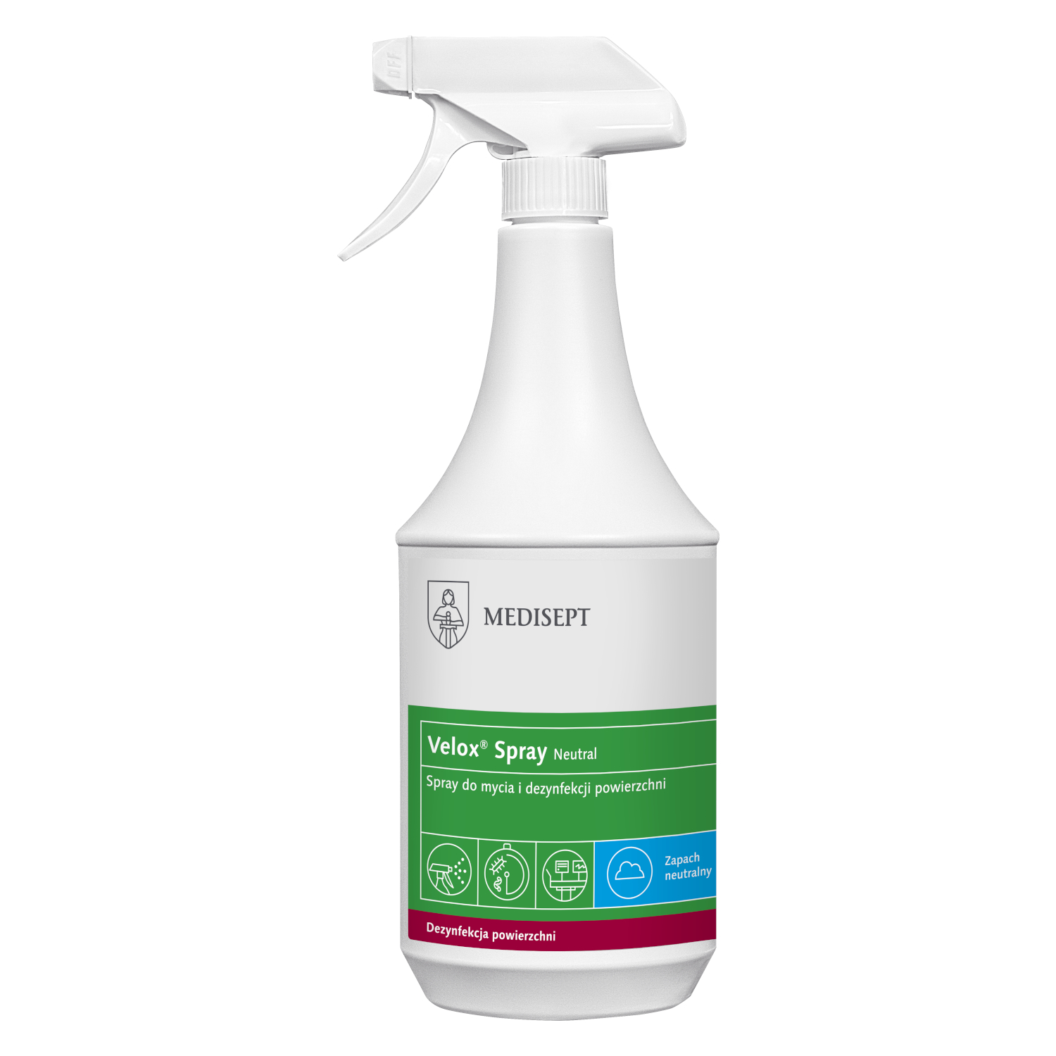 - Velox Spray jest gotowym do użycia preparatem na bazie alkoholu, do dezynfekcji sprzętu medycznego i małych powierzchni takich jak, stoły zabiegowe, łóżka, sprzęt rehabilitacyjny i aparatura medyczna.
